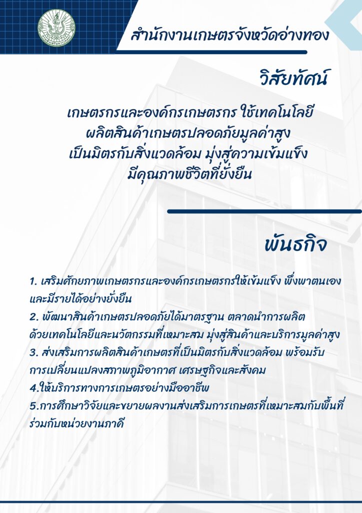 วิสัยทัศน์ พันธกิจ สำนักงานเกษตรจังหวัดอ่างทอง